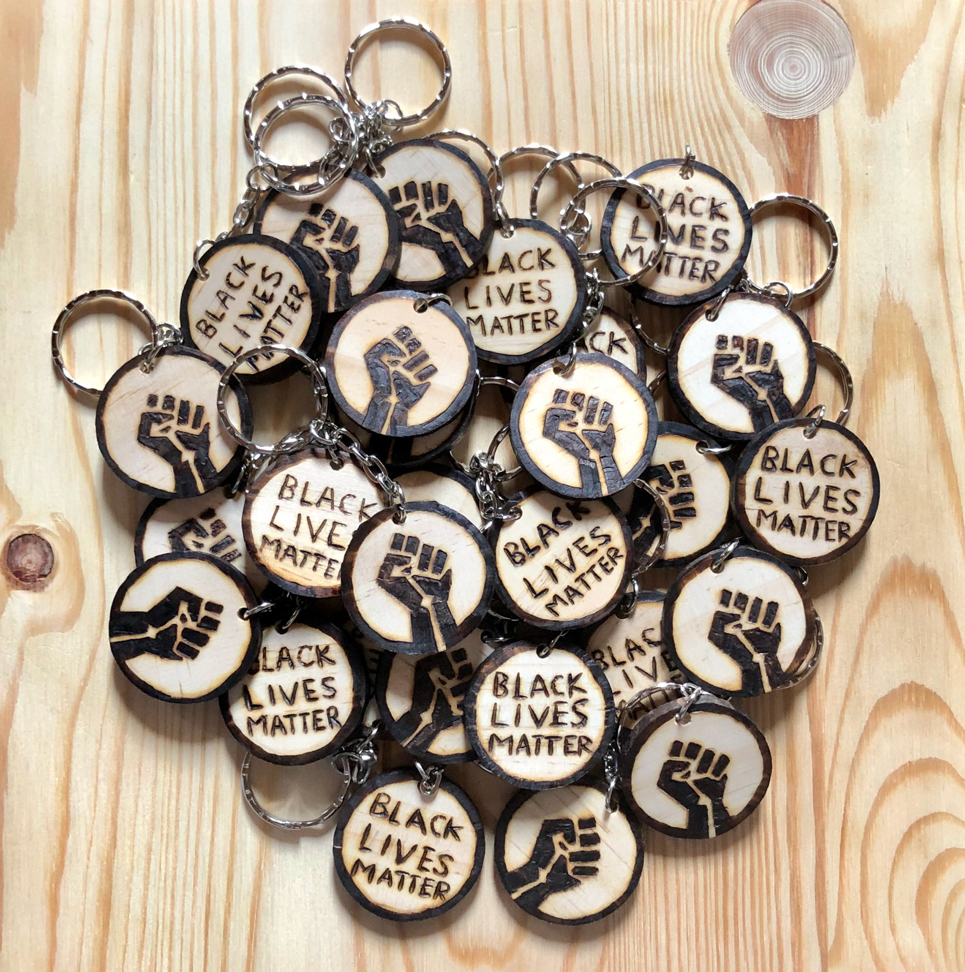 Raised £350 for Black Lives Matter Charities during the first Covid Lockdown by selling handmade pyrography wooden key rings.