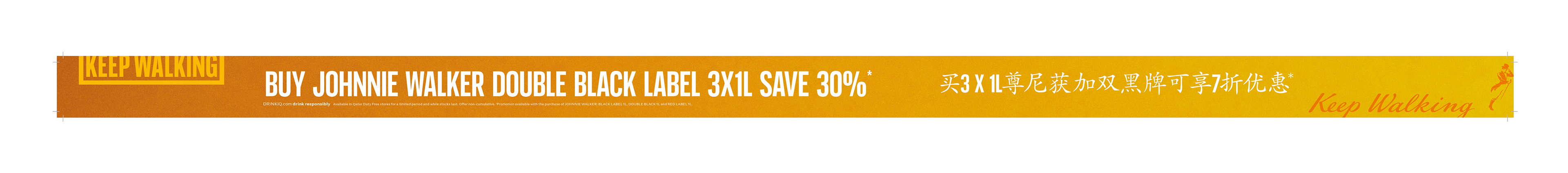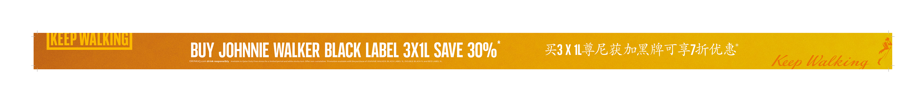 Johnnie Walker 'Keep Walking' Screen Glorifiers and Shelf Strips following the branding and aesthetic of the new minimalistic brand guidelines set by Johnnie Walker.
